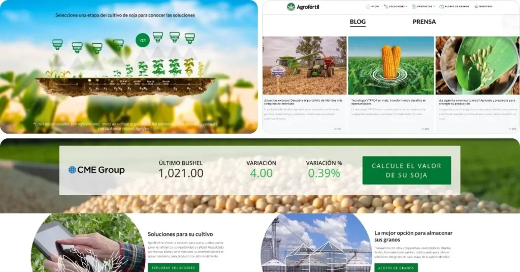 Para lograr eso, la web no solo debía ser una vitrina comercial de sus productos y soluciones, sino también una herramienta de valor para los productores y la comunidad en general.