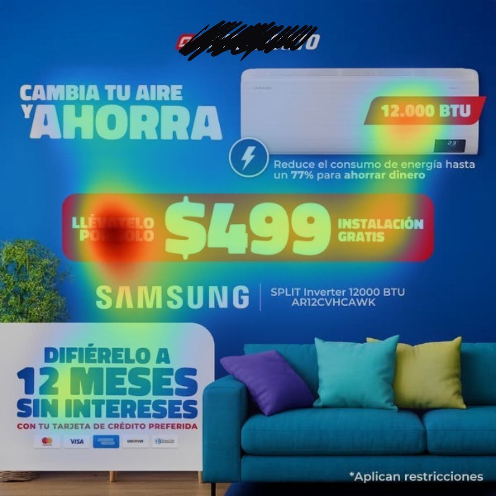 En Latamclick implementamos mapas de análisis visuales predictivos aplicados a los anuncios publicitarios y contenidos para redes sociales en nuestro servicio de auditoría digital. Lo hacemos para entender cómo una persona percibe y procesa la pieza publicitaria antes de mostrársela (sin gastar dinero en A/B testing).